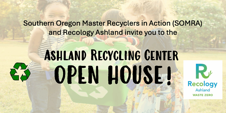Southern Oregon Master Recyclers in Action (SOMRA) and Recology Ashland are hosting an open house at the Ashland Recycling Center. Swing by to learn about recent changes to Oregon’s expanded and producer-supported recycling system and check out exhibitors and the new Goodwill donation trailer on site. This family friendly event will have music, snacks, and exhibitor booths from local groups working to reduce waste.