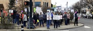 National 50501, which seems to be an amalgam of several activist groups on the East Coast, called for a second round of rallies for Presidents Day, February 17th, and called it “Not Our President Day.” Huge rallies were held all over the country including in Medford where between 250 and 500 folks rallied at Medford City Hall and then marched to Vogel Plaza in the heart of downtown Medford.