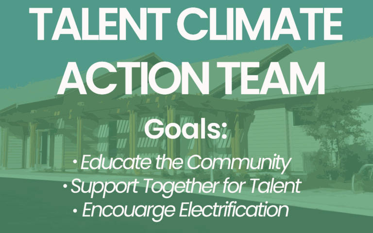 SOCAN’S Talent Climate Action Team meets monthly on the 2nd Tuesday from 6 to 7:30 pm at the Talent Public Library, Talent Community or on Zoom when the library is not available. The meetings currently focus on SOCAN’s Talent Climate Action Team’s Strategic Plan that examines electrification, which includes information gathering and education. The team is also making plans to participate in the Talent Harvest Festival this fall. Anyone interested in climate action in Talent is invited to attend. Contact Eleanor@socan.eco for additional information. See updates here.