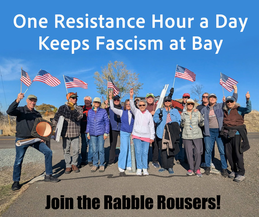 One Resistance Hour a Day Keeps Fascism at Bay! Join the Rabble Rousers every Tuesday at the intersection of Barnett and Highland.