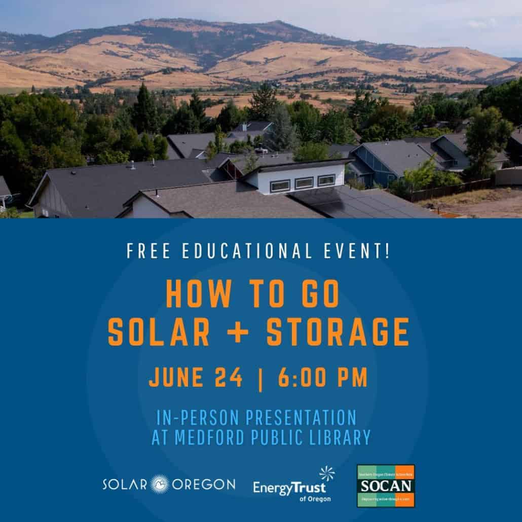 Nicole Maticic, Program Manager at Solar Oregon, will answer your questions about how grid-tied solar energy and battery systems work, share information about incentives available, and help you take the first step to adding solar and or battery storage on your home or business. Information Tables from related businesses and non-profits in the Rogue Valley […]