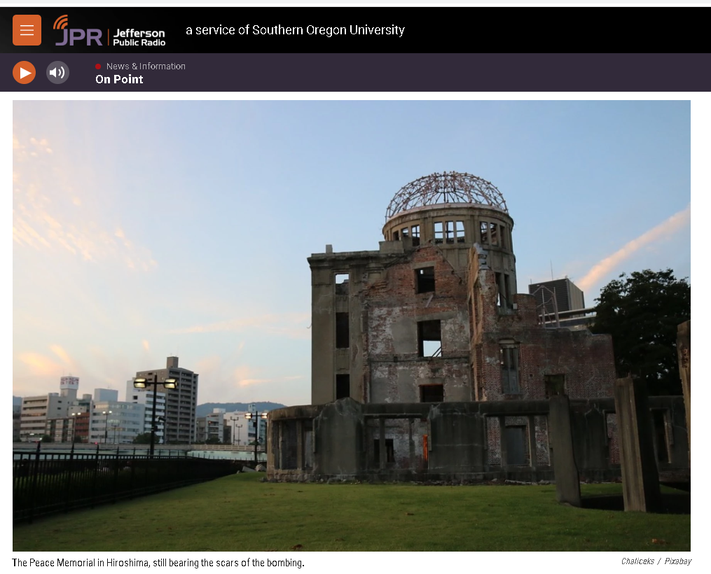 JPR stream: Hiroshima And Nagasaki + 75 Years https://www.ijpr.org/show/the-jefferson-exchange/2020-08-06/fri-8-30-hiroshima-and-nagasaki-75-years